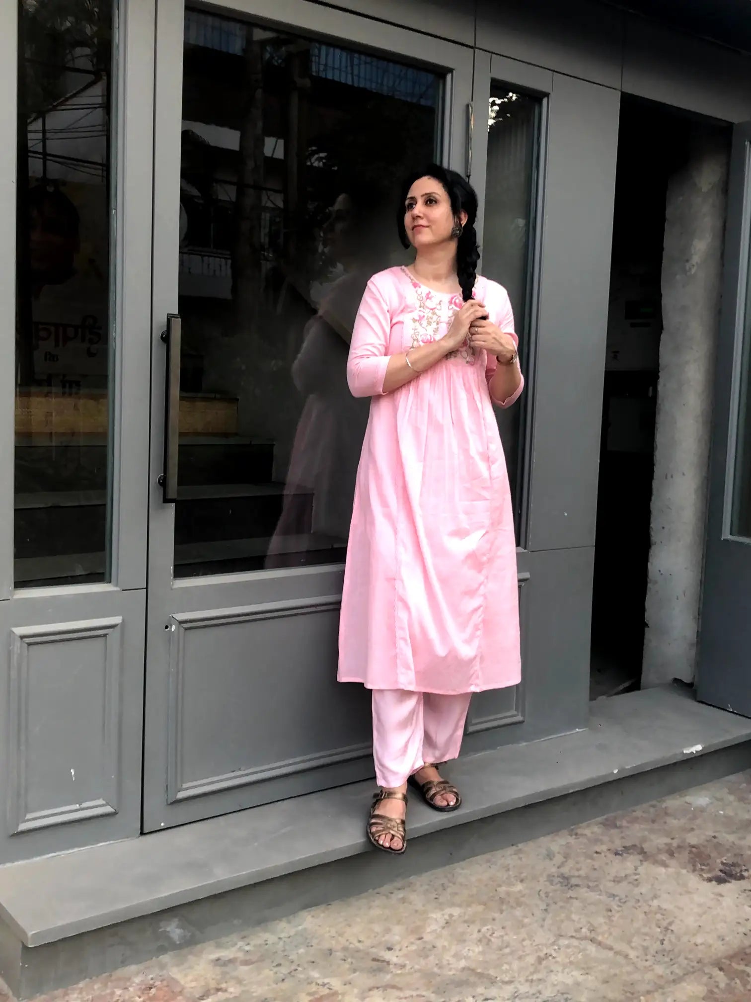 Very comfortable and graceful outfit. The color looks soothing and the overall finish feels premium.