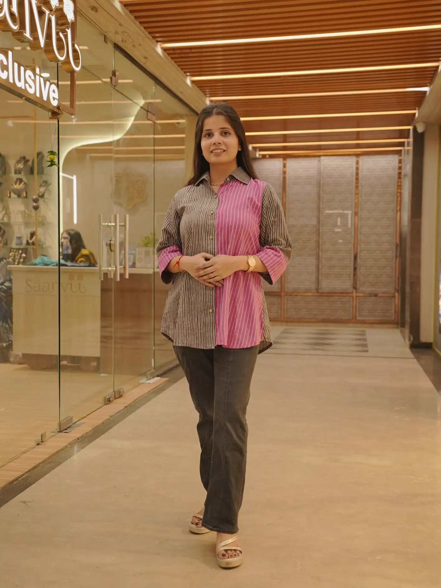 Style: Classic shirt silhouette with artisanal detailing