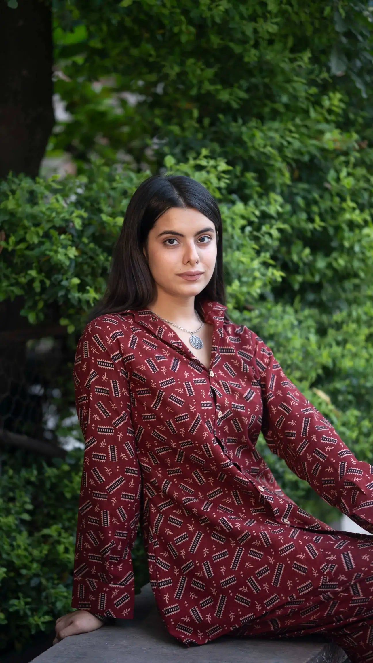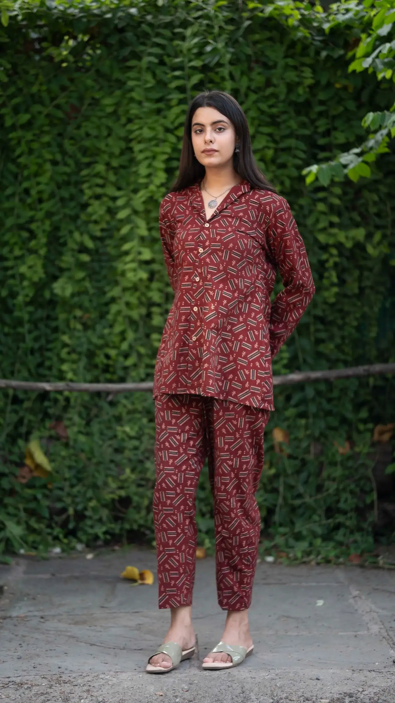 A Red Ajrakh Handblock Co-ord Set that beautifully blends traditional Ajrakh printing with a modern, easy-to-wear silhouette. Crafted in rich red tones and detailed with intricate handblock motifs, this set offers comfort, style, and heritage charm all in one. Perfect for festive brunches, casual outings, and effortless everyday elegance.